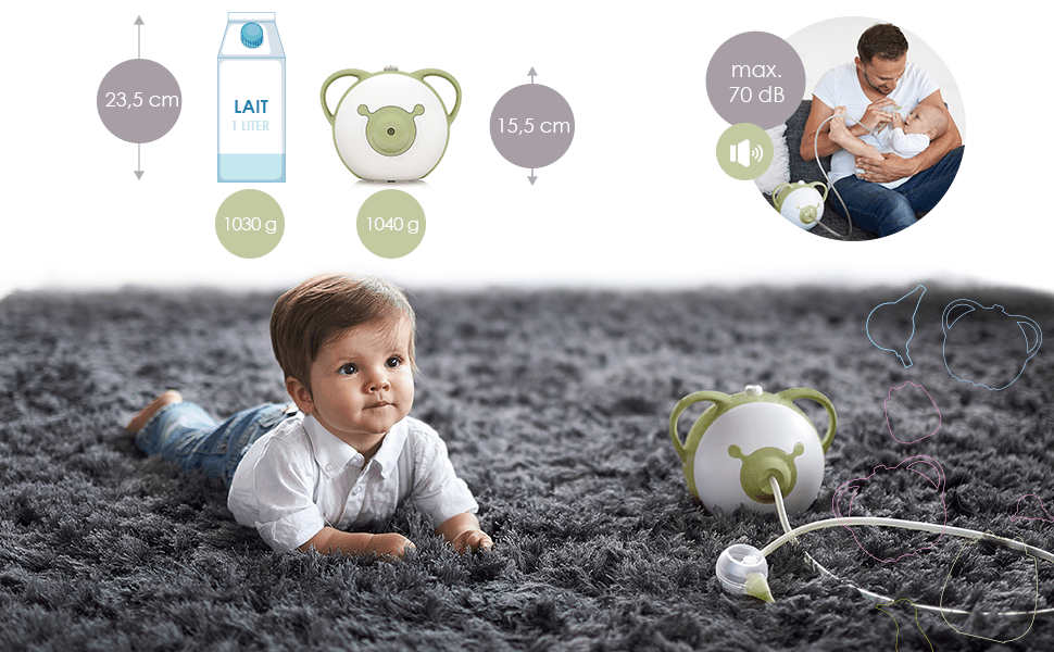 The suction power can be adjusted to match the child’s age and the thickness of the mucus.